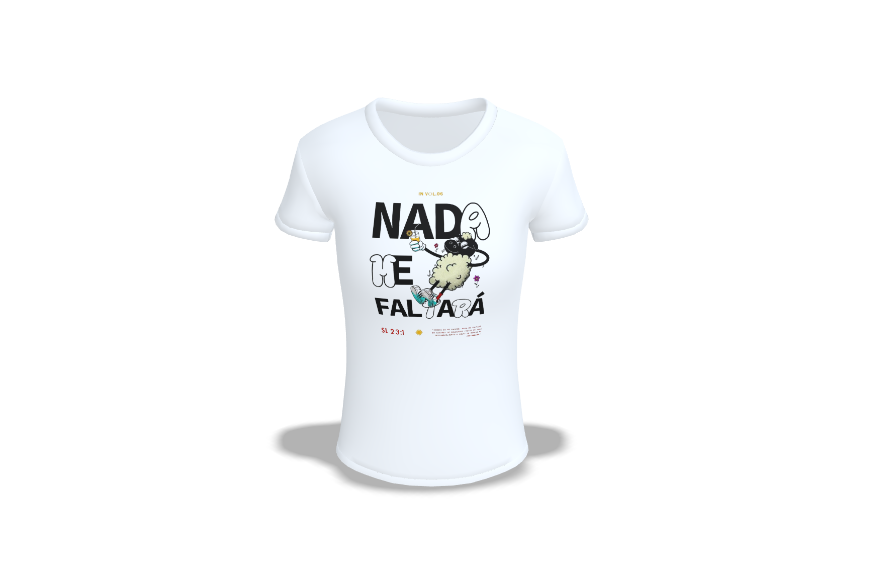 Você receberá uma camiseta branca Nada me faltará, disponível em tamanhos variados (consulte disponibilidade). Produto vendido individualmente, sem acessórios.
